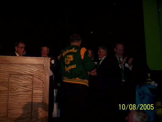 Coach McQuade, Fr. McAlister, and two interested observers.