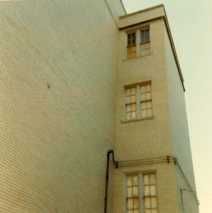 The older building, viewed from the east side parking area