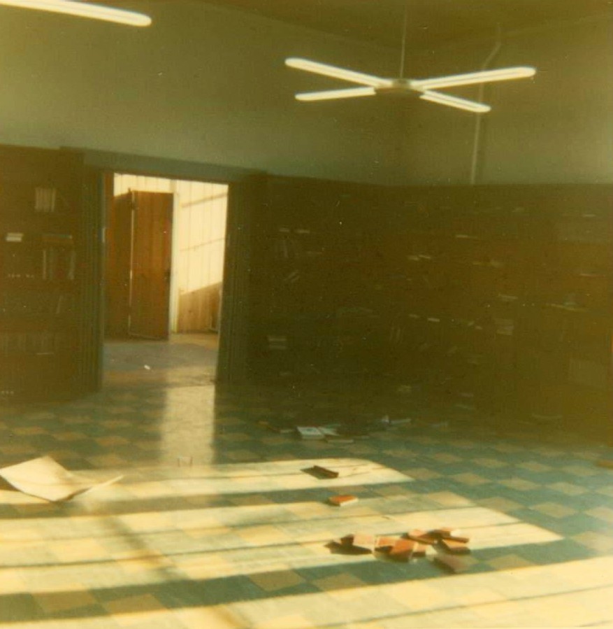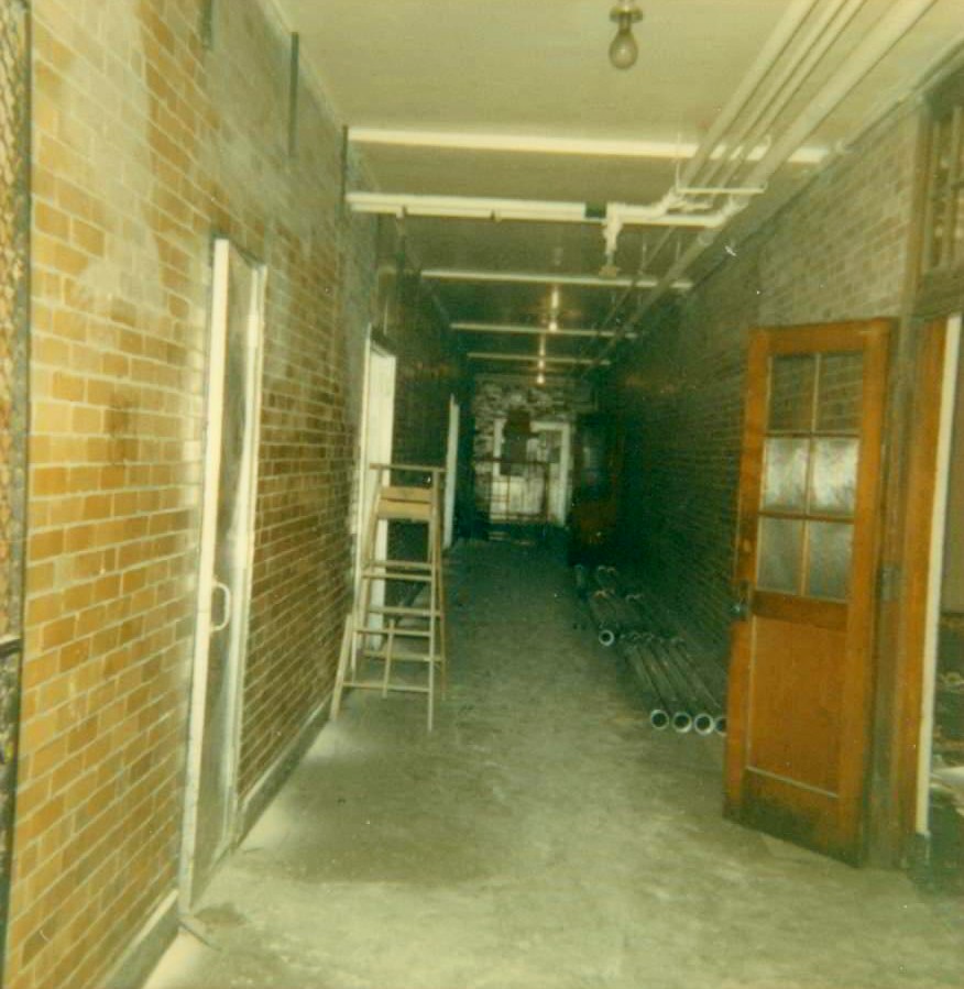 The basement of the older building, where the drafting class was located